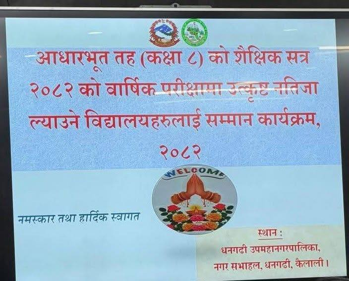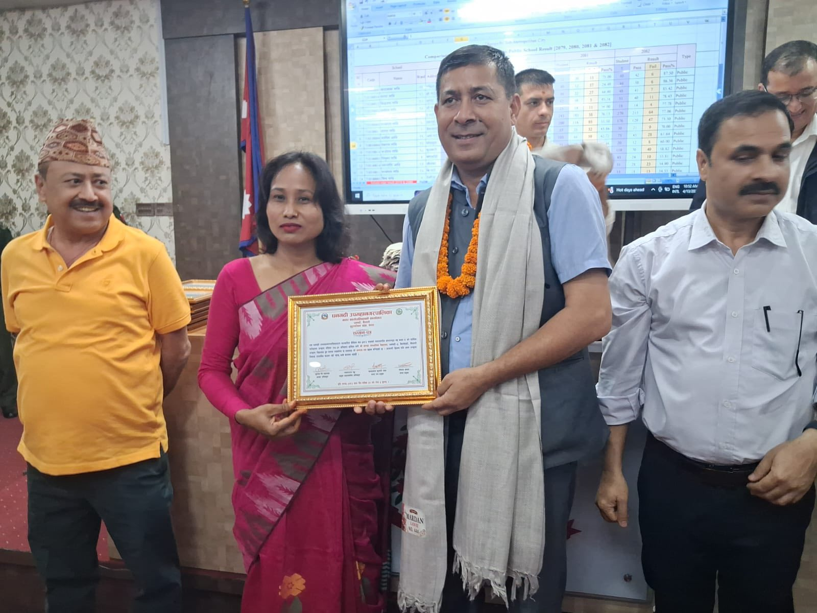 आधारभूत तह (कक्षा ८) को परीक्षामा उत्कृष्ट नतिजा: श्री शारदा मा.वि. धनगढी उपमहानगरपालिकाद्वारा सम्मानित